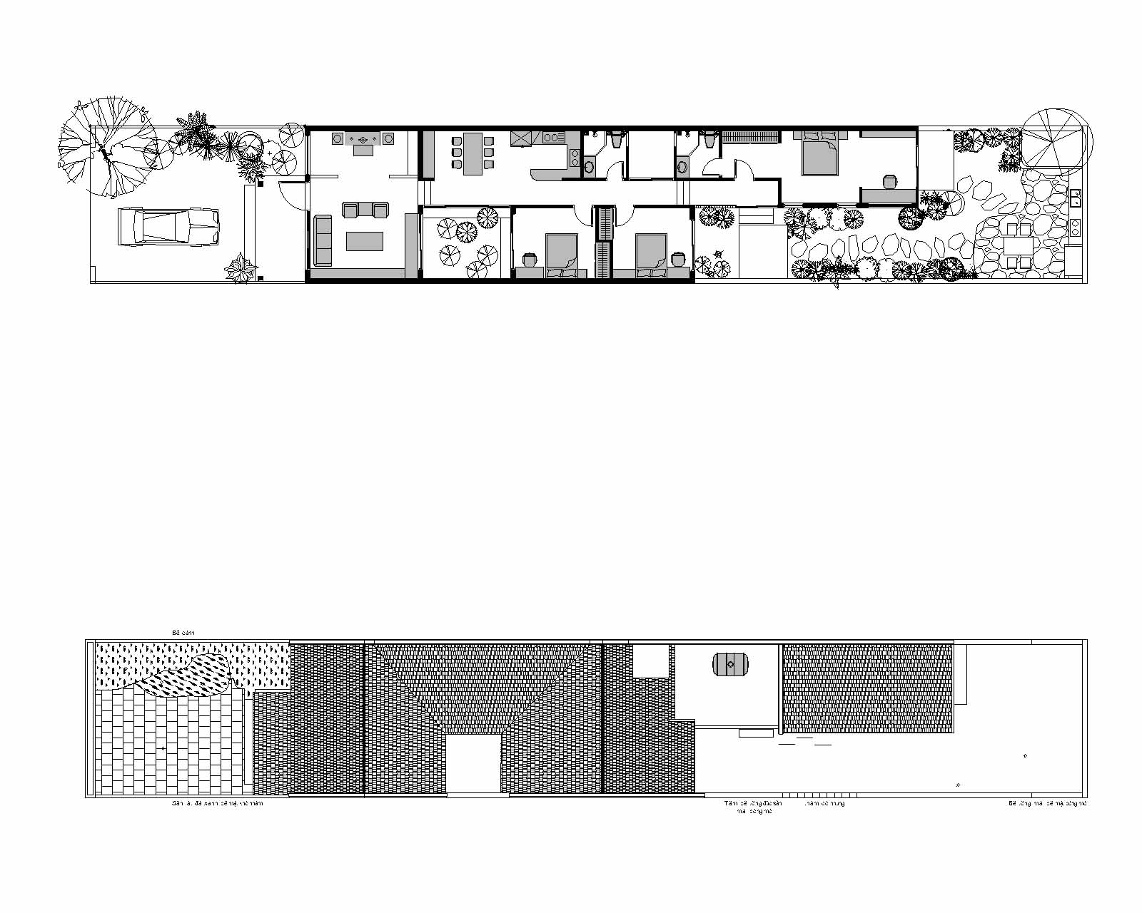 Với diện tích khu đất 7x45m và diện tích xây dựng 160m², ngôi nhà được thiết kế khéo léo theo phong cách truyền thống. Phòng khách liền kề phòng thờ tạo nên không gian ấm cúng, trang nghiêm. Các phòng ngủ được bố trí dọc theo chiều dài khu đất, xen kẽ với những khoảng giếng trời và không gian xanh, mang đến sự thoải mái và gần gũi với thiên nhiên.
