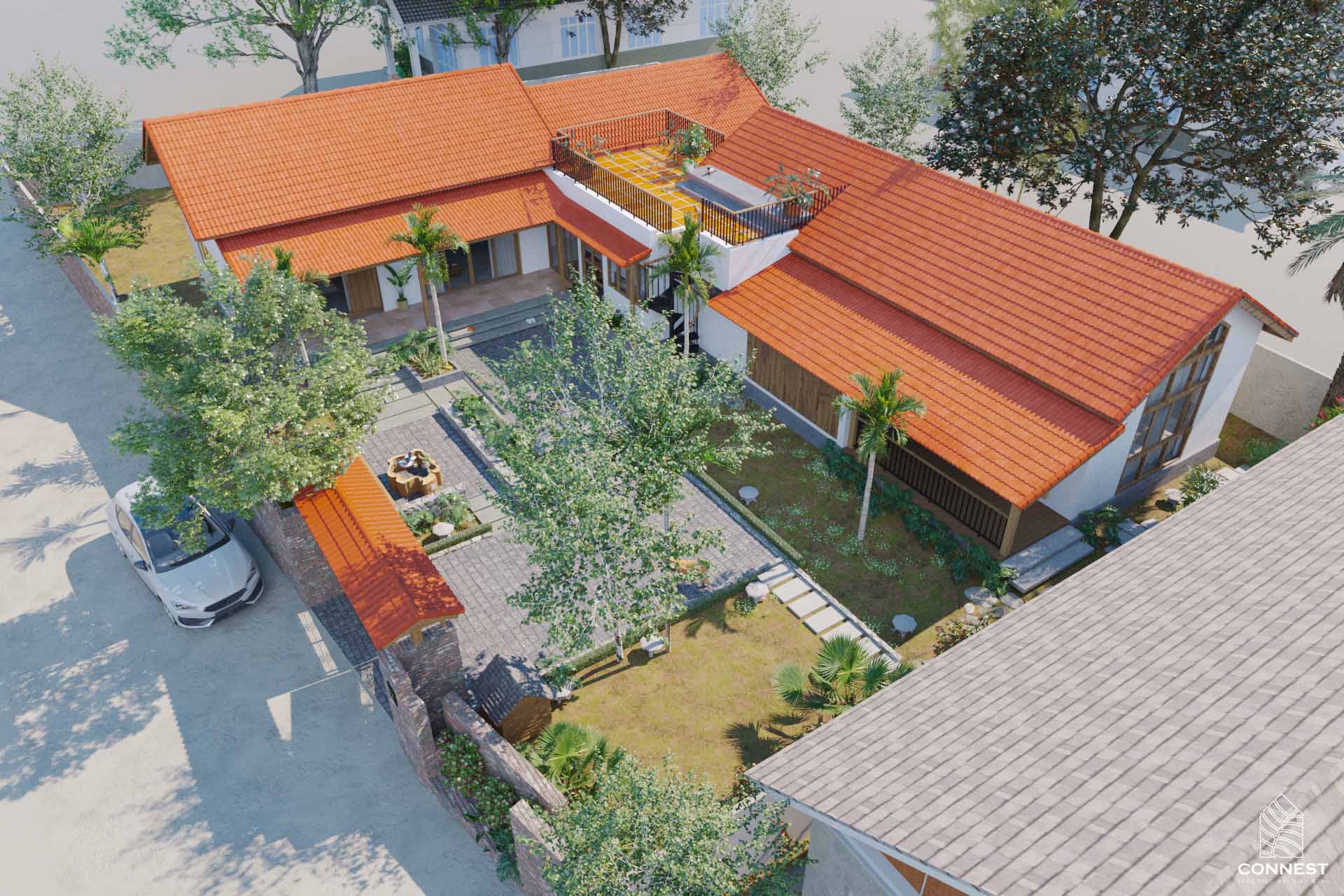 Nhà Ngói được thiết kế với không gian mở, mang đến sự kết nối chặt chẽ giữa con người và thiên nhiên. Những ô cửa kính lớn bao quanh giúp ngôi nhà luôn ngập tràn ánh sáng tự nhiên và làn gió mát lành. Thiết kế hiện đại này không chỉ tạo cảm giác thoáng đãng, phóng khoáng mà còn tối ưu hóa diện tích sử dụng. Nhà Ngói là lựa chọn hoàn hảo cho các gia đình muốn sở hữu một không gian sống đậm chất cá nhân, tiện nghi mà vẫn hòa mình vào thiên nhiên.