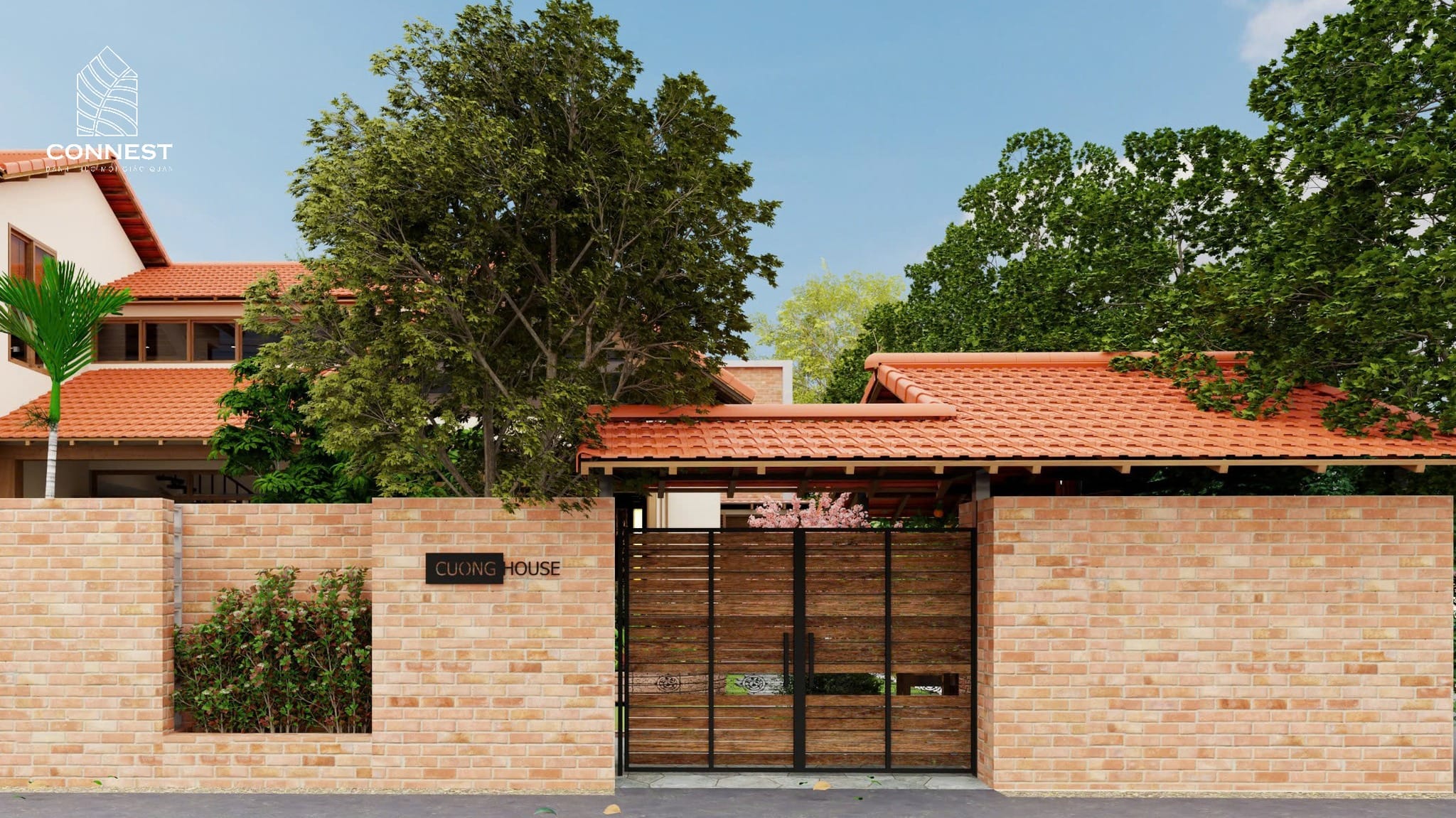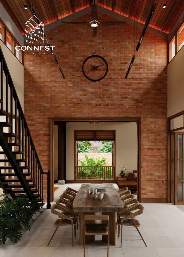 Ngôi nhà được xây dựng như một món quà yêu thương từ người con xa quê dành tặng bố mẹ, mang đậm hơi thở quê hương với mái ngói đỏ, tường gạch mộc và hệ thống cột gỗ vững chắc. Kiến trúc không chỉ giữ gìn bản sắc văn hóa mà còn phù hợp với điều kiện khí hậu địa phương, giúp không gian luôn mát mẻ và thông thoáng.